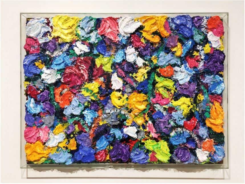 許益謙:鄧老師的創作核心很清楚,作品中堆積的不只是顏料,而是像情感的寄託、生活中的喜怒哀樂等。談到鄧老師的媒材,我特別喜歡2016年的裝置作品「諾亞花園」,作品透過鏡子與動力裝置,表現了虛幻、現實與自然的交錯,其實鄧老師創作了那麼多,就是在建立如上所述的三角關係;自然、人、藝術之間的距離。